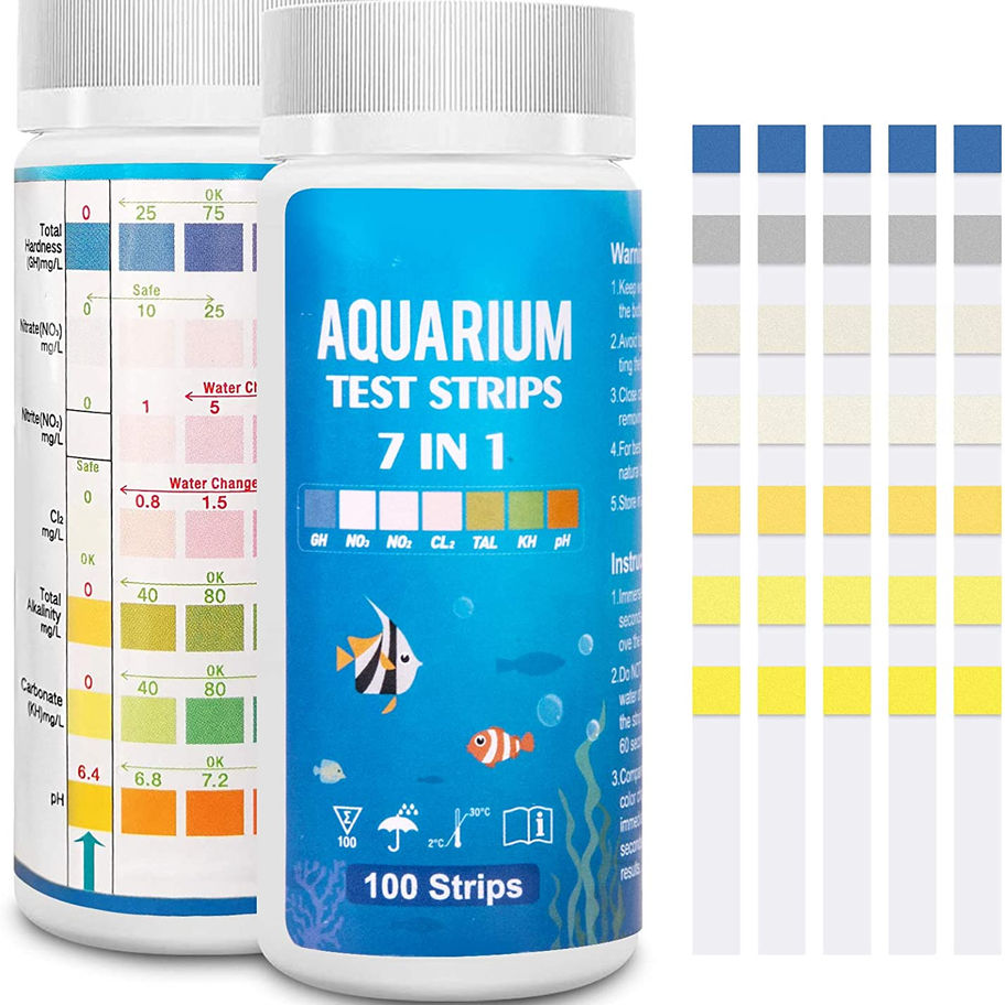 7 in 1 AQUARIUM WATER TEST KIT - our fish tank strips total have 7 elements: Nitrate, Nitrite, General Hardness, Free Chlorine, PH, Carbonate,Total Alkalinity, testing your fish tank if it is healthy water