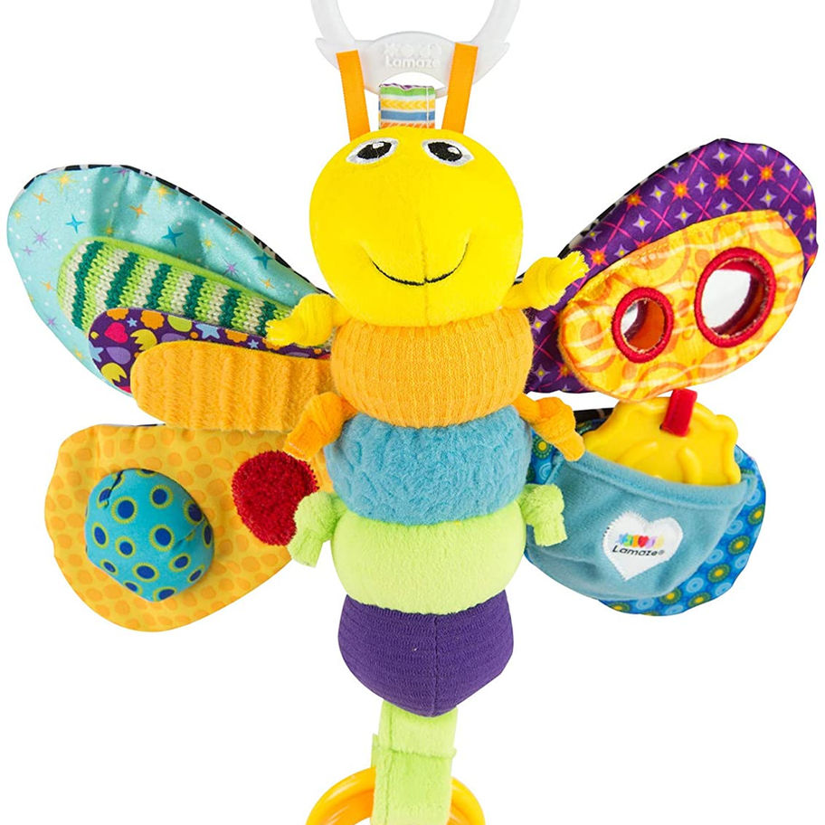 Encourage early development of your baby from day 1 with Freddie The Firefly! A custom designed teddy bear- like, soft, infant toy that will make your little one entertained and happy. Freddie comes packed with baby-safe features to become your baby's best companion to play and discover. Its black and white high contrast patterns, the squeaker, knotties and other features will give your little one a vast range of textures, shapes and colours to play and experiment with. All these features are an excellent support for your newborn's hand to eye co-ordination development and sensory stimulation, as well as imaginative play. Its friendly design and daffy smile will make your baby's eyes light up every time they see it. Clip this baby toy to a buggy, pram, or car seat to keep the little one entertained while shopping or travelling as Freddie is soft, has no-harmful areas or surfaces and contains no parts small enough to be ingested. Freddie makes an ideal gift for a baby shower party or newborn's first Christmas - give the gift of learning and early discovery!